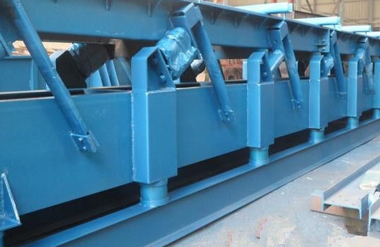 彈性連桿振動輸送機(也稱為偏心振動輸送機、雙質(zhì)體振動輸送機),屬于振動輸送機的一類。其是通過偏心軸、連桿和彈簧系統(tǒng)產(chǎn)生線性振動,從而帶動槽體作往復(fù)運動,實現(xiàn)物料的定向輸送的設(shè)備。通常彈性連桿振動輸送機結(jié)構(gòu)通常都采用隔振彈簧,使機架和參振槽體形成雙質(zhì)體型式;而振動形式仍為線性振動,有利于生產(chǎn)應(yīng)用。